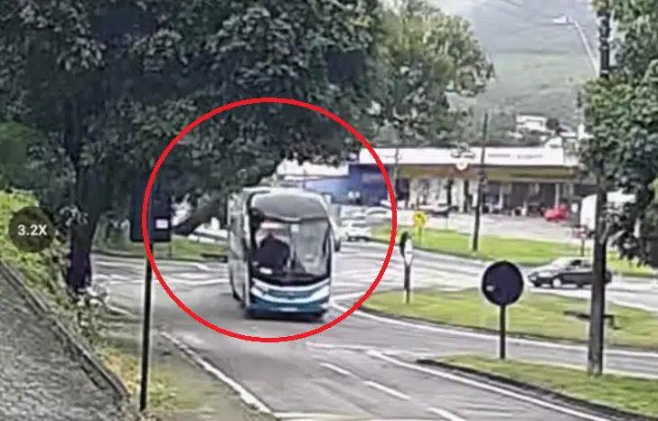 Na imagens é possível ver que o ônibus passa e segundos depois a árvore cai. Por sorte, nenhum carro passou no momento do desabamento e, apesar do susto, ninguém se feriu.