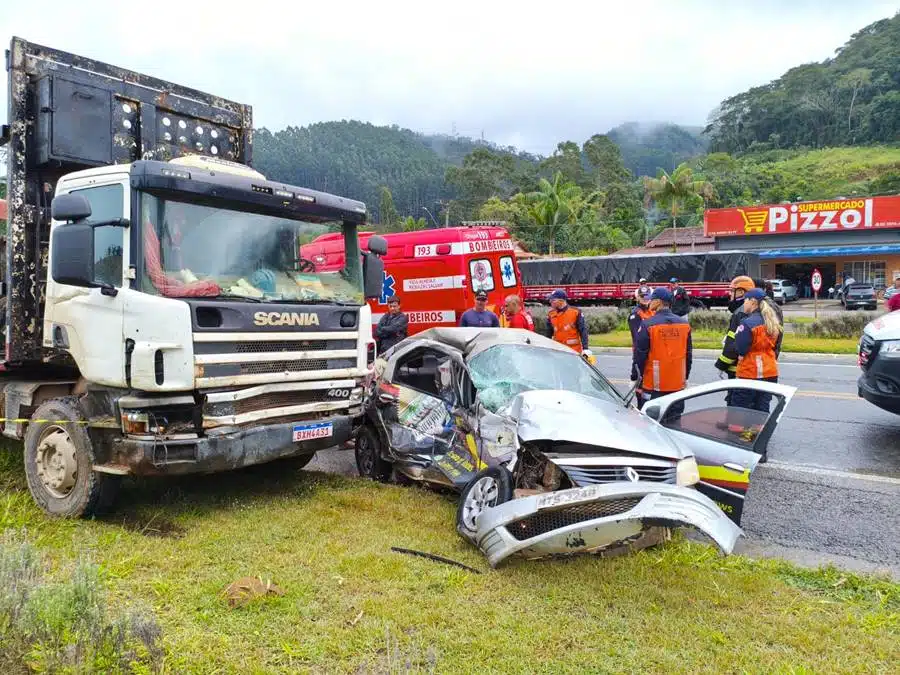 O motorista do caminhão não teria se ferido. A vítima veio a óbito no momento em que era retirada do carro por equipe dos bombeiros.